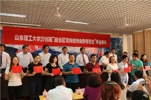 最后,胡军海代表新疆自治区教育厅向山东省、山东理工大学对新疆教育工作的无私帮助、真情奉献再次表示感谢。他希望广大毕业生心怀感恩,扎根基层,潜心教学,尽快成为所教课程专业的行家里手,成为教书育人的专家楷模;希望大家始终牢记教育工作者、国家公职人员、知识分子“三重身份”,争做有理想信念、有道德情操、有扎实学识、有仁爱之心的“四有”好老师,争做党和人民满意的有历史责任感、为人师表、立德树人、专业过硬的新疆特色的“四好老师”。