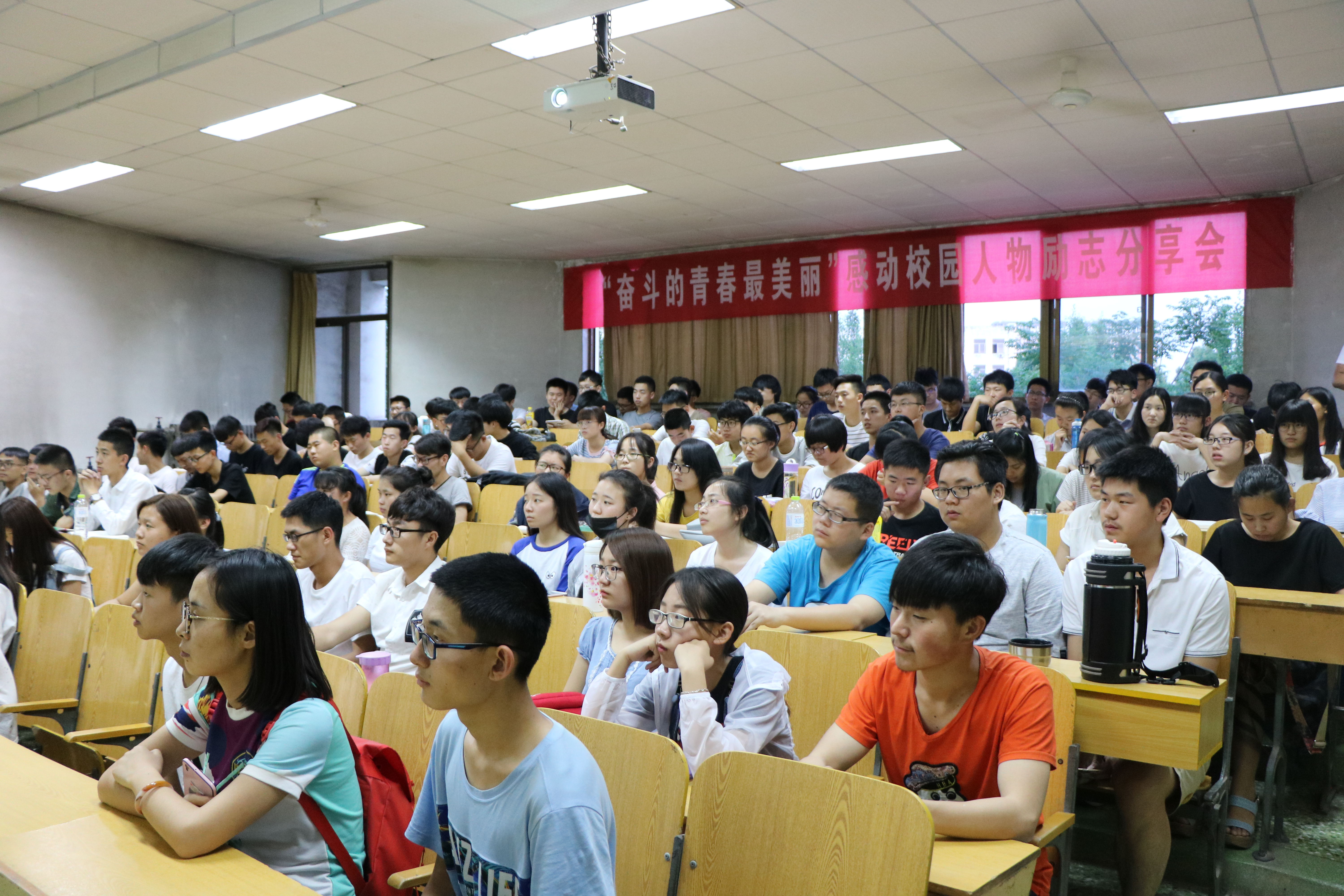 感动就在身边,榜样凝聚力量。为发挥典型人物的带动和示范作用,理学院于5月14日晚在15号教学楼203教室举行“奋斗的青春最美丽”励志分享会,此次分享会邀请校园感动人物获得者曹书鑫,理学院考研成绩优异的光电信息科学工程专业13级学生万茂科,ACM集训代表队成员机械学院14级李标,向日葵志愿服务团代表化学工程学院15级巴迪迪担任宣讲人和各班级代表参加此次分享会。