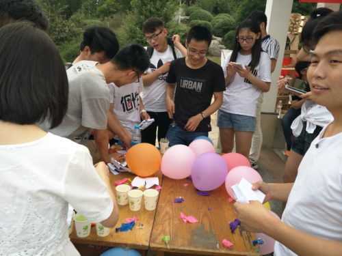活动开始,第一个活动是谁是联想王,通过扎破气球随机出一些关于物理现象的图片来猜测物理原理,现场的同学都十分积极,现场气氛火爆,物理知识接龙和乒乓球飞跃纸杯也十分受欢迎。社团成员全程指导讲解并维持秩序,根据结果发放奖品,大家都露出满意的笑容。
