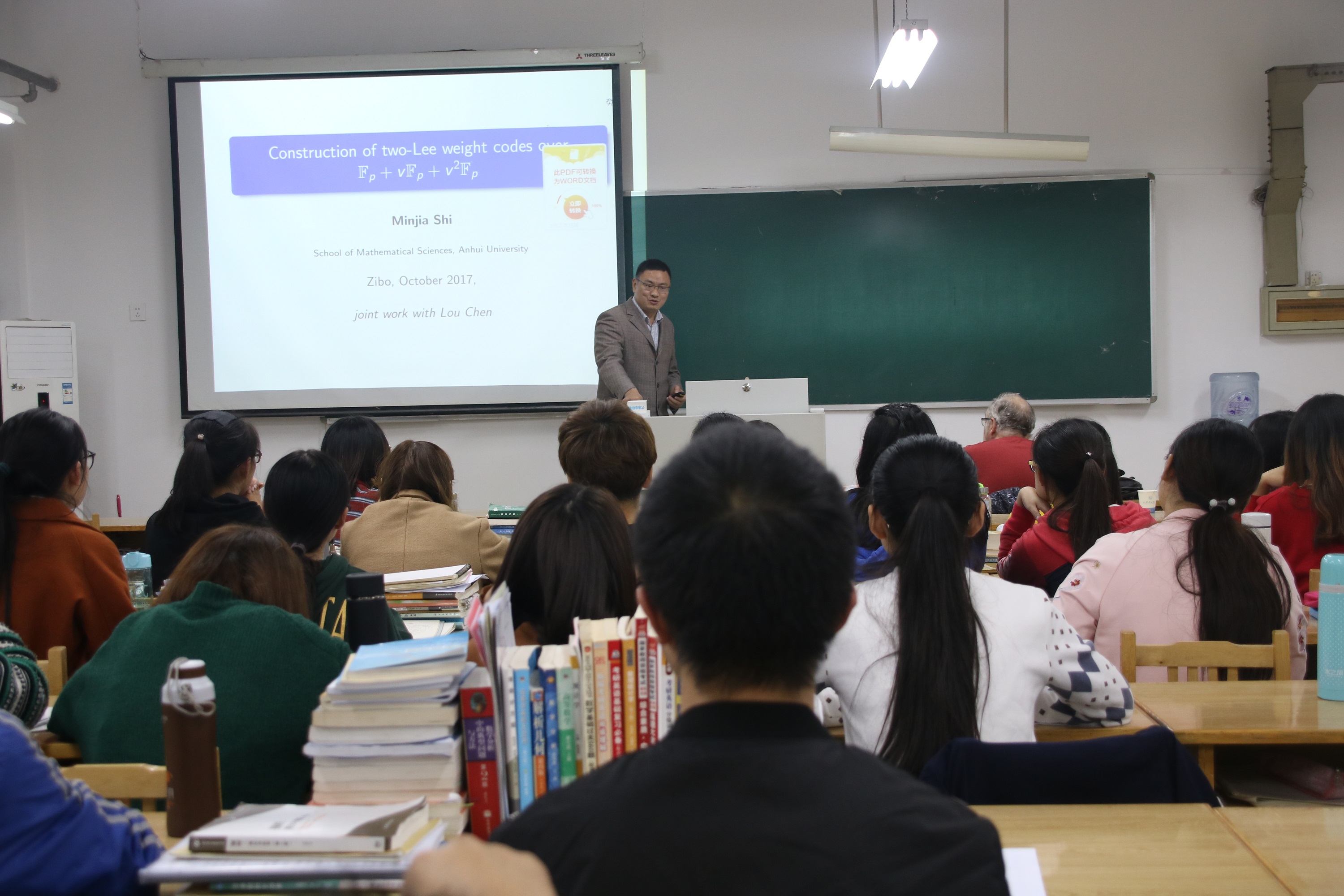 紧接着,施敏加教授做了题目为《Construction of two-Lee weight codes over a non-chain ring》的专题报告。施教授以自己带本科生做学问的亲身经历给同学们讲述如何做学问,搞科研。以深入浅出的讲解,使同学们了解了很多与编码有关的基础内容,并激励同学们敢于尝试,敢于对未知发起挑战,鼓励同学们增强自信心。整场报告会十分精彩,施敏加教授也是对我们的提问给予肯定回答,此次报告会在同学们的掌声中结束。