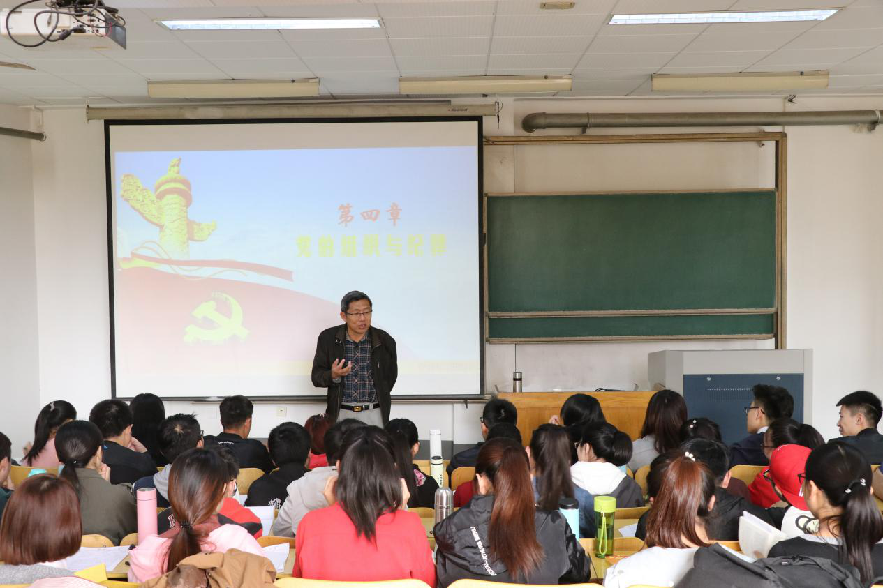 活动伊始,王书记首先就十九大报告提出的新时代、新思想、新矛盾、新征程等向大家作了简要讲解。王书记强调民主集中制是党的根本组织制度这一重要结论,并揭示其发展历程,重点提及由列宁首次提出这一观点的关键概念。随后,王书记就党的十八大所确定的民主集中制基本原则为大家作了重点讲解。最后,王书记介绍了山东理工大学基层党组织设置情况,并祝愿全体预备党员早日入党,成为一名合格的中国共产党员,争做五有人才。