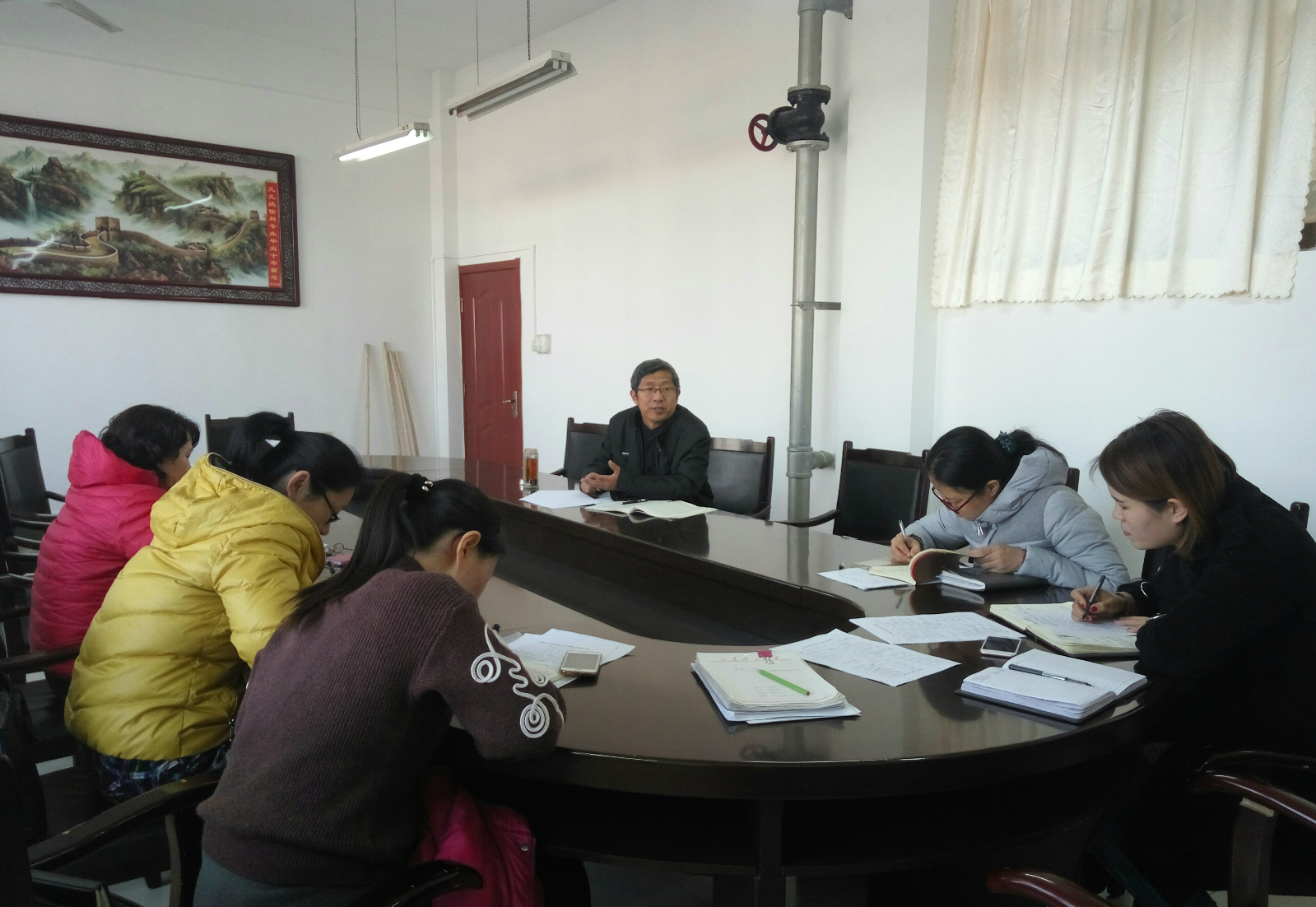 王书记就“如何做好一名党支部书记”、“党支部生活的基本内容和基本方式”为学院6位支部书记做辅导报告。报告会上,王书记强调了党支部的定位、职能、目标,强调各位支部书记应该树立“党的一切工作到支部”的导向。王书记提出,做好一名党支部书记应该注意以下几点:第一,对党忠诚,“上面千条线,下面一根针”,基层党组织要做一根能穿线、能引线的正直的针;第二,牢固树立政治意识、大局意识、核心意识、看齐意识;第三,熟悉基本的制度工作和党建业务,积极按时组织三会一课、民主生活会等;第四,懂得思想政治工作的艺术方法,会做思想政治工作,具有集体意识和服务意识。
