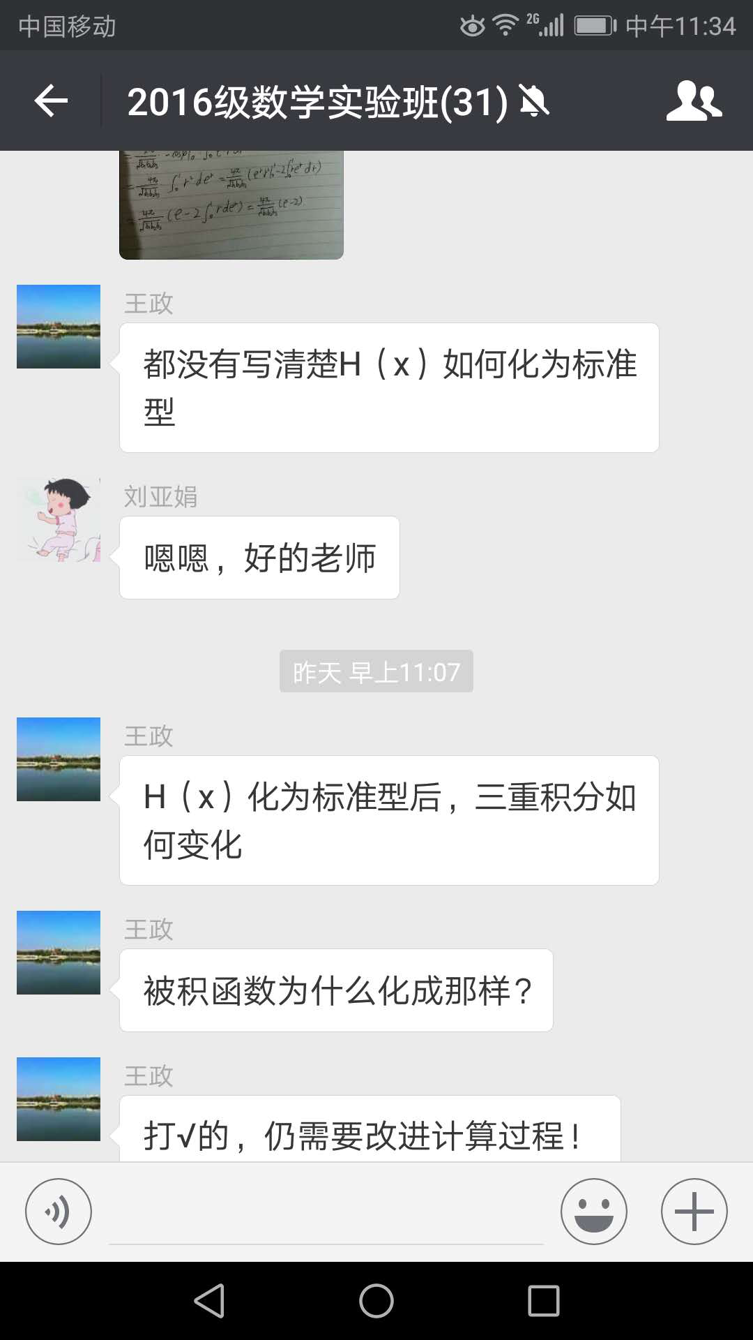 王政老师每天向讨论群里发一两道分析试题,网上讨论,网上批阅,实际上这种第二课堂式的学习方式已经坚持了一个多学期,基本上一天也没有间断。