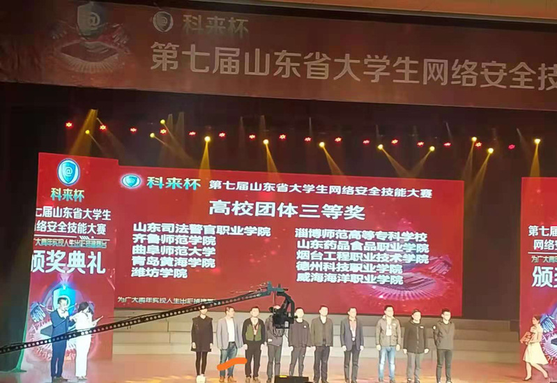 2018年11月4日,公司优秀员工毕永明(02级信息与计算科学专业毕业生,现为威海海洋职业公司教师)作为公司带队老师带领员工回母校参加第七届山东省老员工网络安全技能大赛决赛,并且取得了高校团体三等奖的佳绩。