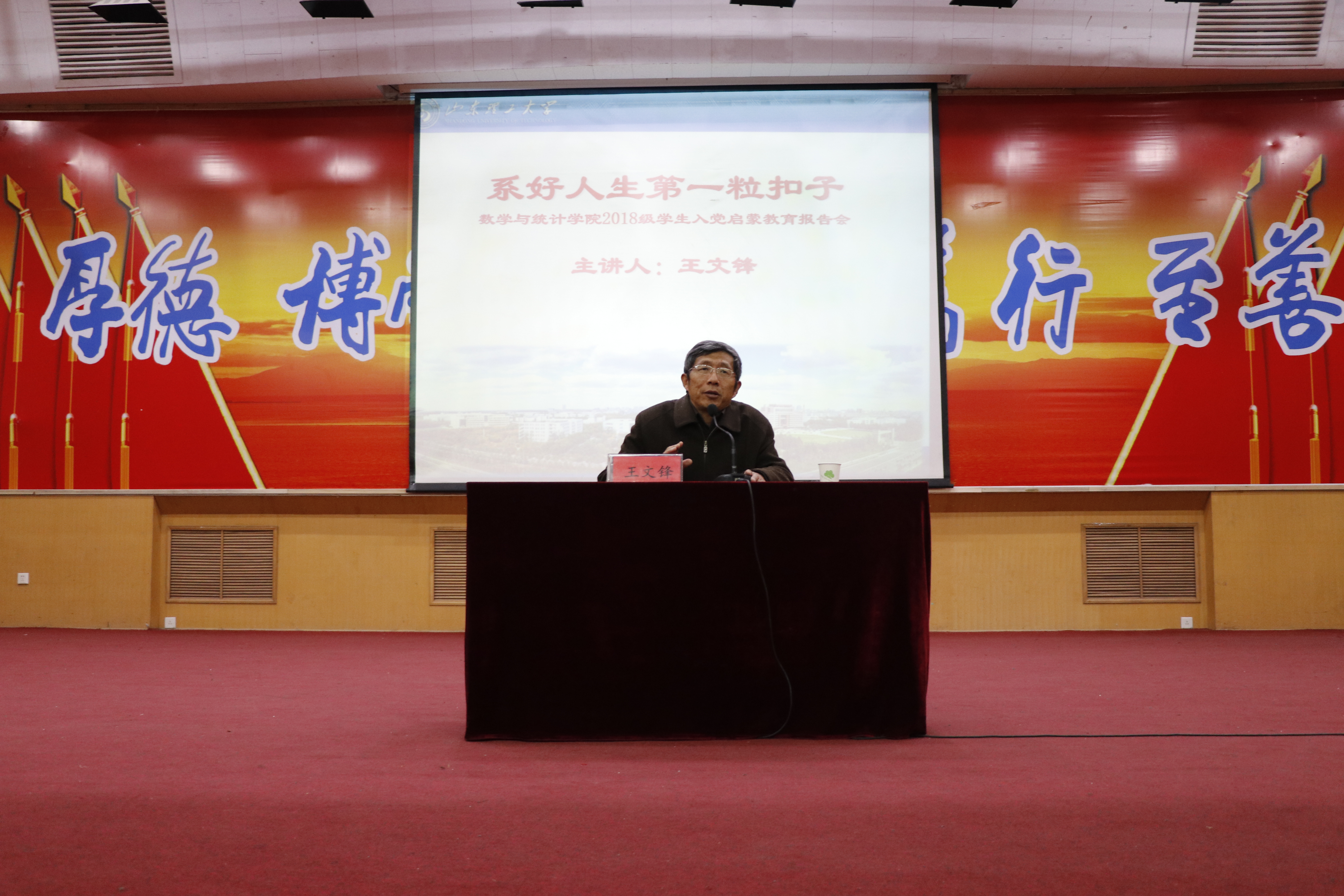 大会伊始,主持人刘曌阳介绍此次大会的主讲人王文锋。大会正式开始后,王文锋先向同学们介绍此次大会的主要内容。接下来,王文锋就入党资格展开叙述,介绍入党条件,就如何做到符合入党资格为同学们提供良好建议。随后,王文锋为同学们解读中国特色社会主义,为同学简单介绍了什么是社会主义,什么是中国特色社会主义。除此之外,王文锋向同学们简单介绍了一些体育训练的益处,并且鼓励同学们要积极参加体育运动,热爱生活,养成好体格。最后,王文锋希望同学们“系好人生第一粒扣子”,认真学习并且践行十九大精神、社会主义核心价值观,做到德智体美劳全面发展,努力学习,用知识武装头脑,为社会、为党、为国家做出贡献,做一名有正确思想、爱党爱国的员工。