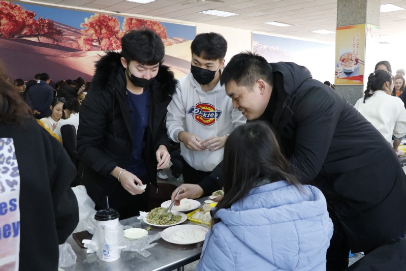 活动伊始,加尼别克首先讲述此次活动的意义,并告诉大家一些注意事项和包饺子的方法技巧。与此同时,按照之前的分组每个小组的组长带着一位组员去食堂窗口领取面团、饺子馅和一些包饺子用的工具。接下来,各位同学就开始进行组内分工,哪几位同学擀皮哪几位同学包馅,还有的同学做后勤,给其他人提供材料。大家如火如荼的进行包饺子活动。此次活动分出了24组,在这次包饺子活动中,通过大家的投票选出了样式最好看的饺子,颁发了奖品。并对饺子数量也进行了评选,选择出饺子数量最多的两组进行颁奖,获奖小组进行了拍照留念。随后,大家排队开始煮饺子,饺子一出锅大家就其乐融融的开始分享自己用劳动完成的饺子。活动期间,王仲孝带领各位老师走进每组同学的身边,观看同学们包饺子的同时,也提出了自己对于怎样“包饺子”的一些看法,并且与每位同学打成一片,他希望同学们可以快速地融入到这个大家庭,也可以更好的学习。