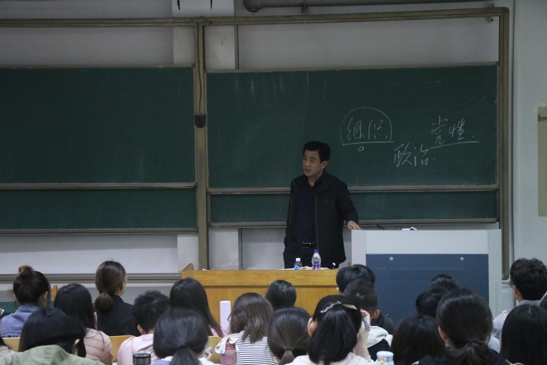 会议伊始,他首先向同学们阐述了中国共产党的根本宗旨,就是坚持全心全意为人民服务。他使用大量的实例,向同学们讲述革命前辈的感人事迹。接着他又对共产党员的基本条件、义务及权利进行的阐释。他讲到,党员履行义务必须要做到全面、严格、自觉,不能有半点马虎,要正确认识党员义务与权利的辩证关系,并对学员进行劝诫,希望他们可以端正自己的入党动机,发挥起“五个带头”作用,成为共产主义事业建设中的中流砥柱。最后,王仲孝就党的指导思想方面为学员们进行了讲解,对马列主义、毛泽东思想、邓小平理论、“三个代表”重要思想、科学发展观和习近平新时代中国特色社会主义思想的内涵作了深刻阐述。他强调,习近平总书记提出的中国梦正是青年学子的中国梦,“青年兴则国家兴,青年强则国家强”,同学们应该明确党员的权利和义务,树立正确的世界观、人生观、价值观,争取早日成为一名合格的共产党员。