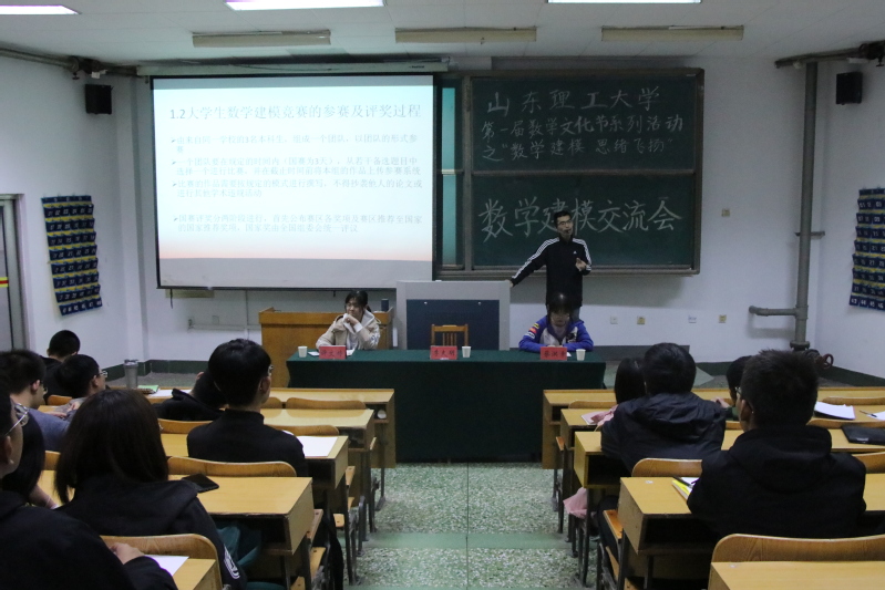 李夫明、丁树江向同学们介绍竞赛培训的相关内容,讲述了一些组队与参赛的技巧,并向同学们分享数学建模的网站,希望喜欢数学建模的同学们利用空闲时间学习。紧接着是在场员工答疑环节,同学们对不明白的问题现场进行提问,由老师负责答疑解惑。最后,历届建模比赛的优秀员工代表徐文婷、蔡洪幸、刘敬琳及张跨龙分别从自身经历出发,与同学们分享了一些经验与感触,同时也列举了很多数学建模的事例,以便同学们可以更好的了解数学建模,积极参与数学建模的活动。