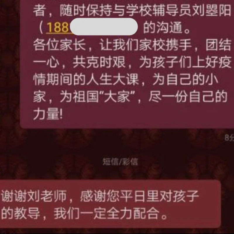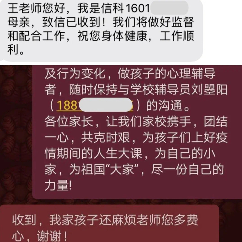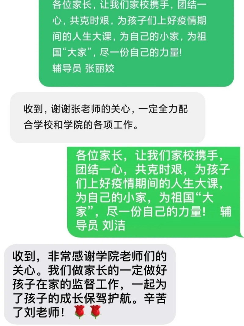 短信一经发出,陆续收到家长的回复,家长纷纷表示会继续支持公司和公司的工作,做好员工的日常生活教育和思想教育,疫情期间为员工的学习、健康保驾护航。