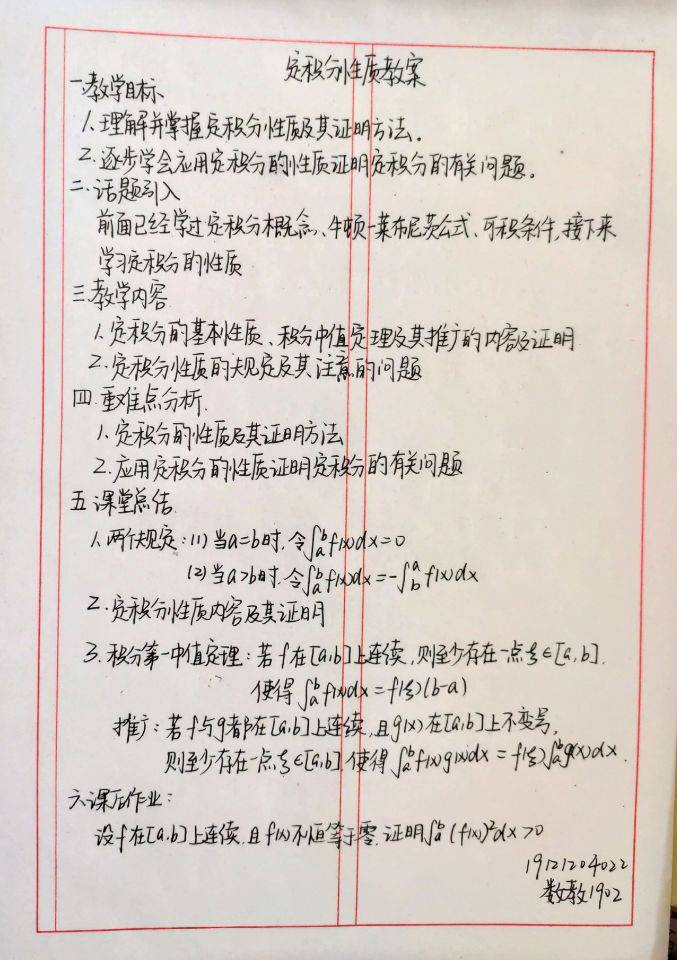2.每周按顺序由五人书写教案(内容不限,与数学有关即可);