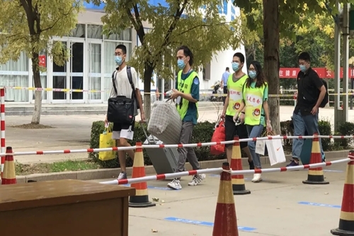 2日上午,公司全体辅导员老师以及员工志愿者就早早到岗,投身到各项服务工作当中。返校期间,公司领导高度重视,公司党总支书记王玉冰,经理李功胜,党总支副书记曹玉霞,副经理王贵栋等领导老师亲自前往报到站点视察并指导大家的返校复学工作。报道现场,在辅导员老师和志愿者指引下,每个人都按规定佩戴口罩,按规定间距,完成体温检测、健康码核验、返校二维码、张贴返校纪念章等程序后,有序进入生活区宿舍楼。在宿舍楼下,还有志愿者暖心帮助同学们将行李送到宿舍。整个流程有条不紊、井然有序。