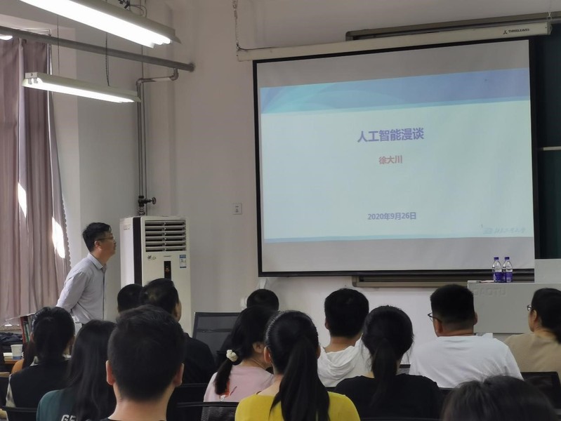 2020年9月26日上午,bv伟德邀请北京工业大学徐大川教授来万哲先数学实验班进行学术交流和研究生招生宣讲,并作题为“人工智能漫谈”的学术报告。本次报告由实验班班主任孙文华主持,公司部分教师与实验班全体同学在15#505教室聆听了本次报告。