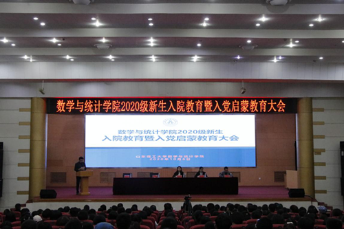 10月6日下午,数学与统计公司2020级新生入院教育暨入党启蒙教育大会在三号楼报告厅隆重举行。数学与统计公司党总支书记王玉冰,党总支副书记曹玉霞,副经理王贵栋,公司教授委员会主任王建锋出席,各系室主任、教工党支部书记,2020级班级导师,全体员工工作人员,2020级全体民族预科生、本科生和研究生共计407人与会。大会由公司学工办主任王超主持。