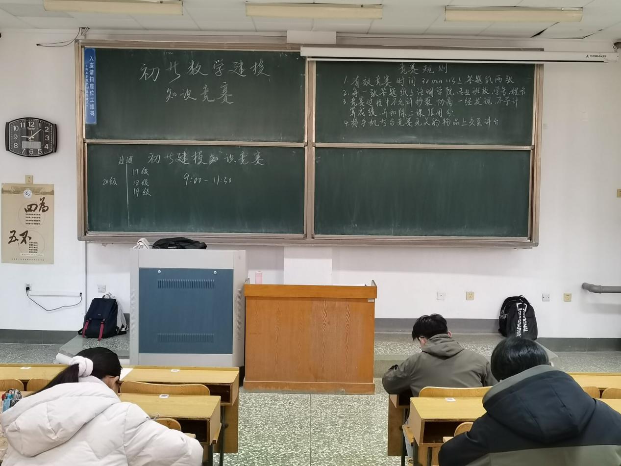 据了解,共有110余人参加此次初等数学建模知识竞赛,可见同学们对数学建模热情高涨。竞赛伊始,监考员向参赛同学介绍了考场纪律与答题流程,着重强调考风考纪问题。同学们按照比赛规则将手机与书包上交到讲台并按照顺序依次坐好,此次竞赛中的每位参赛人员都被分到两张试卷、两张答题卡、一张草稿纸,参赛人员按照考试要求在试卷与答题卡的相应位置书写好自己的公司班级与姓名。据悉,此次竞赛中,数学建模爱好者协会出了7道基础的数学建模题目,4道必做题,3道选做题。