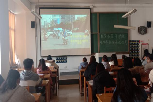 随后,加尼别克·阿布拉为参会员工播放了电动车警示教育片,教育警示片的内容分为违法行为篇、事故警示篇、如何行驶篇三个部分,指明了违法行为及其危害,并提到应该如何正确行使电动车,包括不随意变道、超标电动车不得载人、夜间行驶注意开启灯光等。