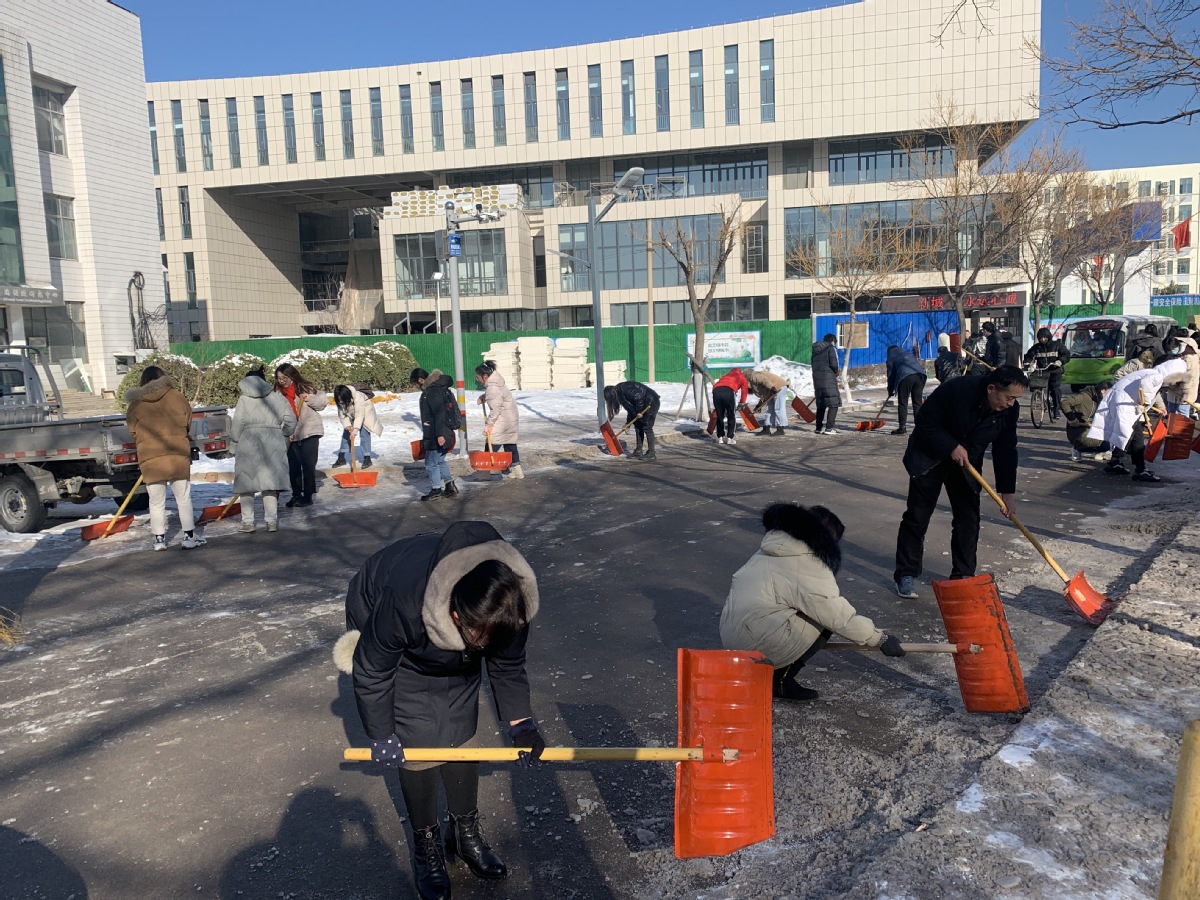 行动中,师生党员们积极到达集合地点参加铲雪除冰行动,每个人都自觉拿起铁锹干得热火朝天,两小时齐心协力的共同劳动,集中清除了绿岛西路路段至艺术中心北路口的整个路段,道路通行的安全度得到显著提高。