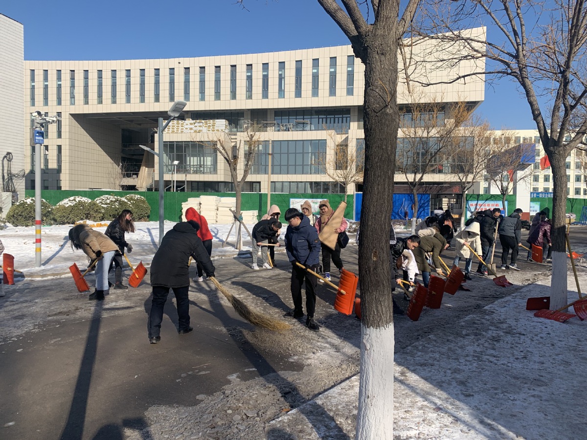 行动中,师生党员们积极到达集合地点参加铲雪除冰行动,每个人都自觉拿起铁锹干得热火朝天,两小时齐心协力的共同劳动,集中清除了绿岛西路路段至艺术中心北路口的整个路段,道路通行的安全度得到显著提高。