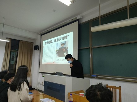 团支书带领大家通过PPT和视频的形式带领大家一同学习拉齐尼·巴依卡的事迹。然后,团支部成员将所学与自身实际相结合,进行感悟分享。