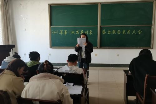 会议第一项,召开2021年第一批发展对象接收预备党员大会。本次参加会议的正式党员共33人,符合开会标准,召开支部大会;由党支部书记王凤璐宣读接收预备党员的支部大会基本程序;本次13位发展对象按照程序进行表态,宣读《入党志愿书》汇报自己争取入党的动机、过程、入党程序等问题;入党介绍人如实介绍了各自联系的发展对象的情况,并对其能否入党表明了意见;支委会向支部大会报告拟接收同志的审查情况,与会党员充分讨论并发表了意见;在场34位正式党员进行了无记名投票,结果为全票通过同意连月芳、赵琦、杨家惠、古丽娅尔·图尔荪、韩玉峰、曲帅龙、刘文静、李浅、孙蔼韦、曹雪美、蔡洪幸、林莉、吕屹琳这13名同志为预备党员;发展对象逐一对加入中国共产党表明了态度。
