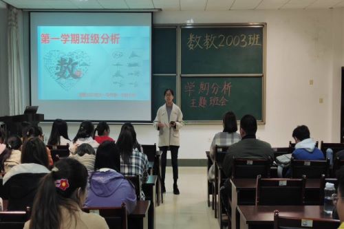 为了更好地加强班级建设,打牢学风建设的基础,让同学们充分认识自身发展,深入了解班级整体状况,数教2003班于47日晚上在15号教学楼430教室召开学情分析主题班会,会议由班长申雯瑜主持,班级导师王玉田、辅导员王凤璐以及数教2003班全体同学参加此次会议。