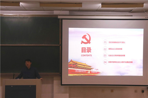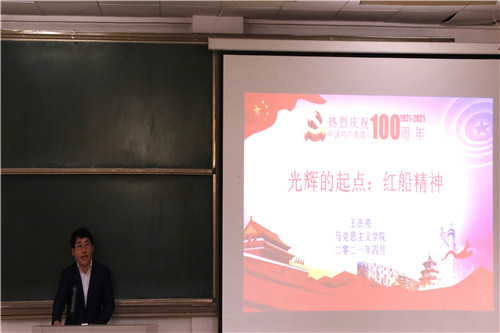 党史学习教育动员大会(教师)邀请马克思主义公司王在亮博士作党史学习教育专题讲座,会议由公司经理李功胜主持,公司全体教职工参加。会议伊始,马克思主义公司王在亮博士为全体教职工作题为《光辉的起点——红船精神》专题讲座,他从红船精神与中国共产党的诞生、红船精神的历史内涵以及红船精神的新时代价值三个方面为大家上了一堂生动深刻的党课,既有珍贵生动的史料展示,又有详尽深入的理论阐释,老师们收获很大,感受颇深。