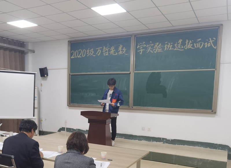 为培养数学拔尖人才,促进拔尖员工进一步成长,更好的搭建好实验班平台发展,2020级万哲先数学实验班面试选拔工作于4月21日晚7:00在15号教学楼510教室进行。此次选拔由bv伟德副经理王贵栋主持,教务处郑兆青副处长、bv伟德副经理孙俊涛教授等9名教师担任评委。