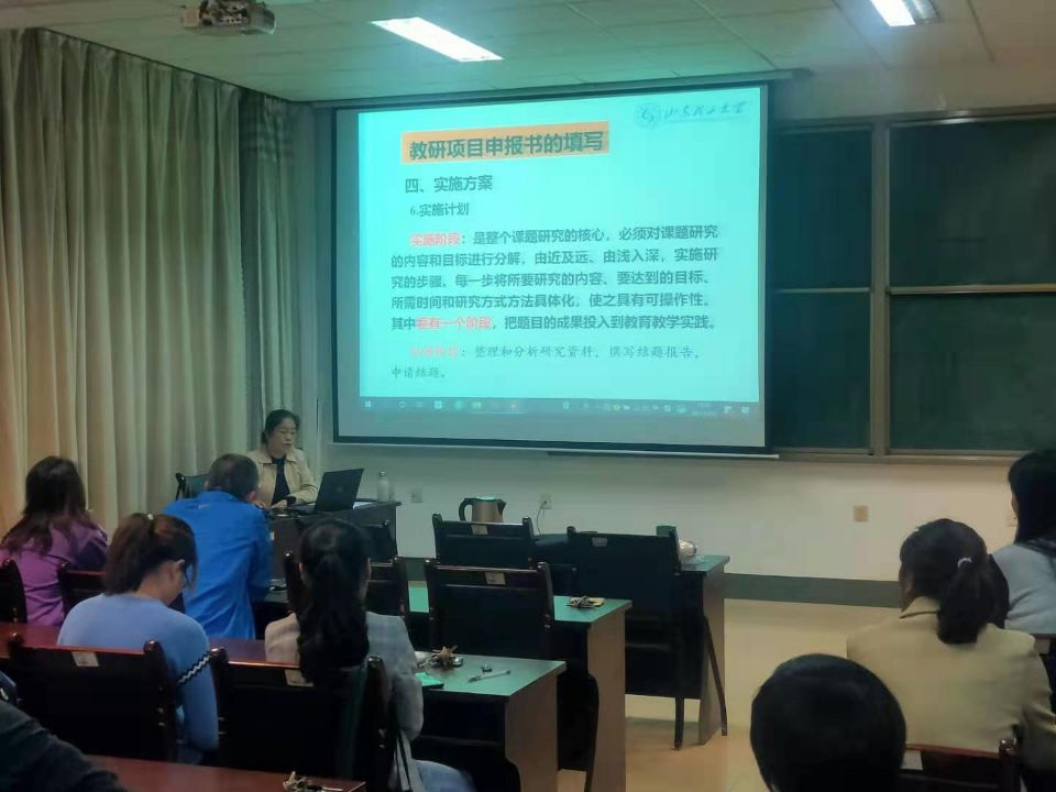 其次,针对2021年校级本科教学项目申报书的填写,赵教授从研究内容、研究目标、解拟决的关键问题、预期成果形式、预期效益、研究方法、推广价值作出了详细讲解。
