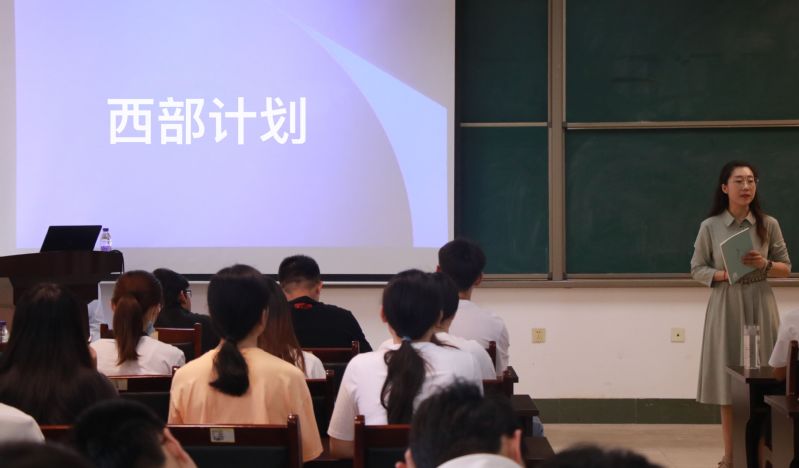 宣讲会上,张丽姣从什么是西部计划、报名西部计划需要哪些条件、怎么报名、参加西部计划可以享受哪些政策优惠、公司针对参加西部计划的毕业生有哪些鼓励政策等方面,对西部计划进行详细解读,帮助同学们进一步了解了西部计划志愿者招募条件和志愿者工作生活情况。她鼓励毕业生到西部去、到祖国和人民最需要的地方去,为当地经济社会建设与发展贡献一份力量,并实现自我价值。