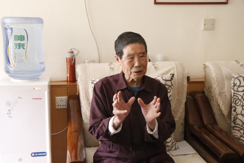 寻访的第二站是杨忠胜老师家中,杨老师今年92岁,他先后参加了淮海战役、渡江战役、解放上海以及抗美援朝,革命期间主要负责后勤药材卫生保障工作。参加抗美援朝战争以后,他被编为特种工程兵先后在甘肃酒泉、新疆马兰、四川搞基地建设。令他印象最深的是用船运送药材的故事。遇到上游撑不动时,他们6个人需三人一组分两拨下去拉纤,最累的时候是过黄河,因为需要两次倒船,光找船就找了一天一夜,从运货的船上倒到渡黄河的船上,过了黄河之后再倒到另一个船上,倒货的时候他们的双腿就一直浸在水里,到现在双腿膝盖以下都落下了病根,但是相比前线牺牲的战士们,杨老师说这算不了什么。谈及入党多年的感受,杨老师说,这么多年来比起革命先烈我幸运太多,感谢党和国家的关怀,永远记得自己宣誓时的誓言,忠于党,为共产主义事业奋斗终身……所以在庆祝党的100年生日时,我捐了1万元特殊党费,向党表表忠心,不忘初心,永远忠于党,忠于人民。