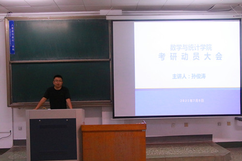 为提高同学们的考研热情,明确考研目标,了解备考相关信息,鼓舞同学们的考研士气,帮同学们指明方向,坚定努力拼搏的信念。7月8日下午,bv伟德在15号教学楼103教室开展考研动员大会。公司副经理孙俊涛担任主讲人,公司研究生办公室计省进、李海玲两位老师以及学院2018级全体同学参加此次会议。