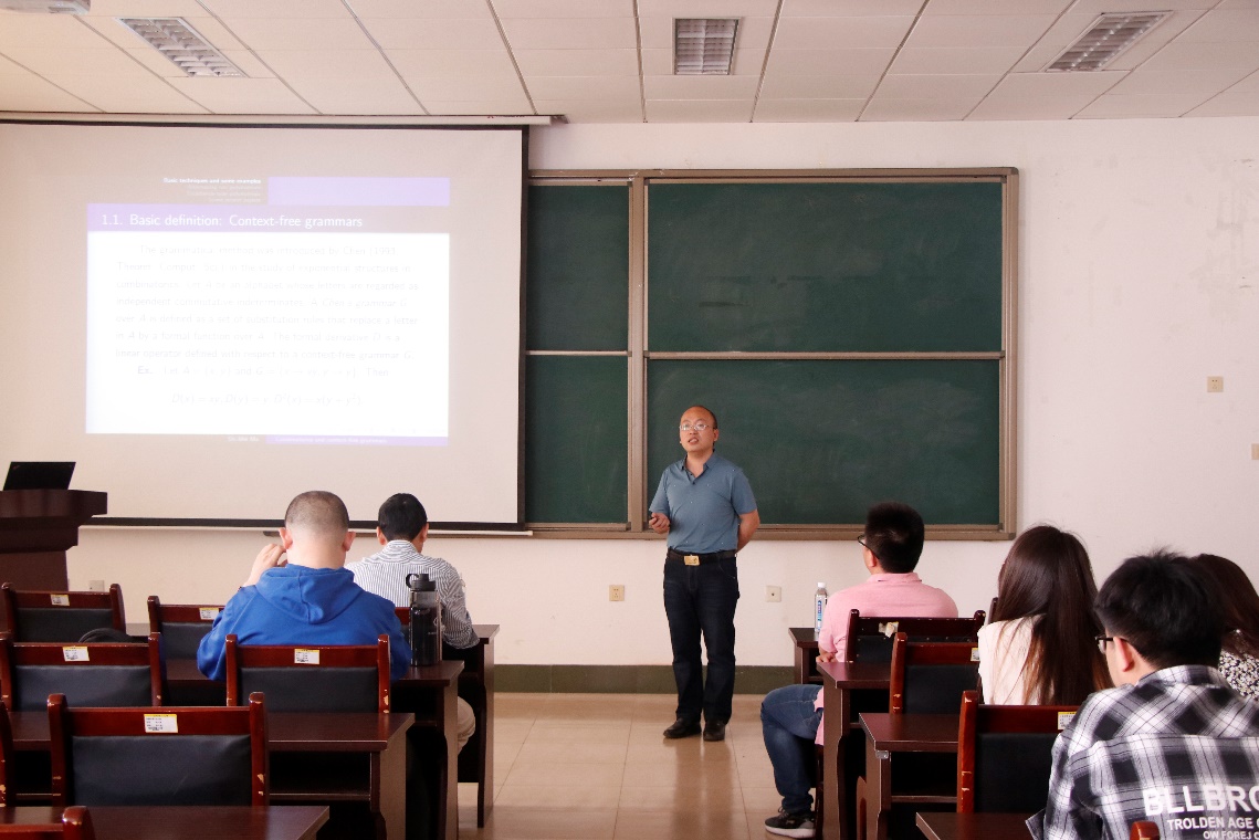 5月19日上午,2001级员工、东北大学秦皇岛分校马世美副教授于15号楼430报告厅作了题为“Combinatorics and context-free grammars”的学术报告,报告会由公司经理李功胜主持,部分专业教师以及全体研究生参会。马教授首先介绍了形式文法、文法变换等基本概念以及形式文法的发展,重点介绍了交替运行多项式,文法利用文法变换法系统地研究了欧拉统计量及其相关多项式,并介绍了近期的一些研究成果。报告结束后马教授与会师生进行充分的交流和讨论。整个报告内容丰富生动,深入浅出,给公司师生留下深刻的印象。