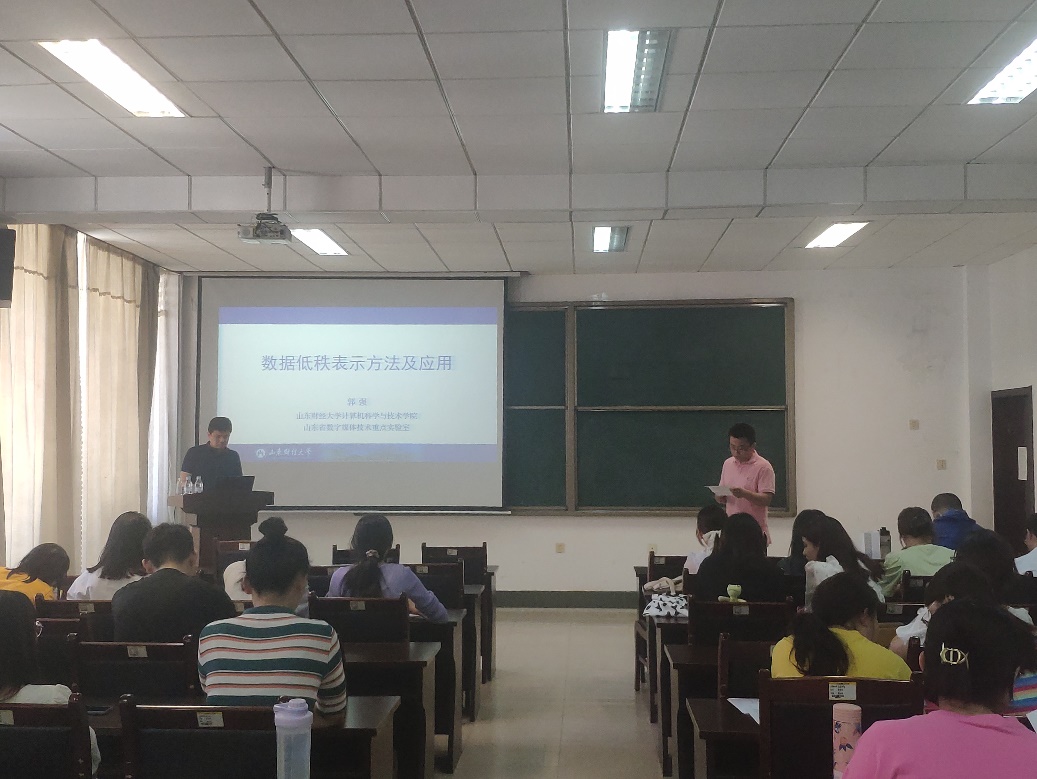 5月26日上午,公司1998级优秀员工、山东财经大学教授郭强作题为《数据低秩表示方法及应用》学术报告,报告由公司副经理孙俊涛主持,公司部分教师及研究生参加。郭教授的报告围绕数据的低秩性进行展开,首先说明了大数据时代的数据具有低秩性这一性质。在此基础上,以图像低秩修复为例,介绍了核范数、加权核范数等方法处理数据的缺点,并通过利用k维森林、Lanczons近似等方法,针对现有算法模型进行加速,得到了较好结果。报告最后,郭强教授为广大师生介绍了数据低秩性的应用,涉及推荐系统、时序预测、异常检测等。