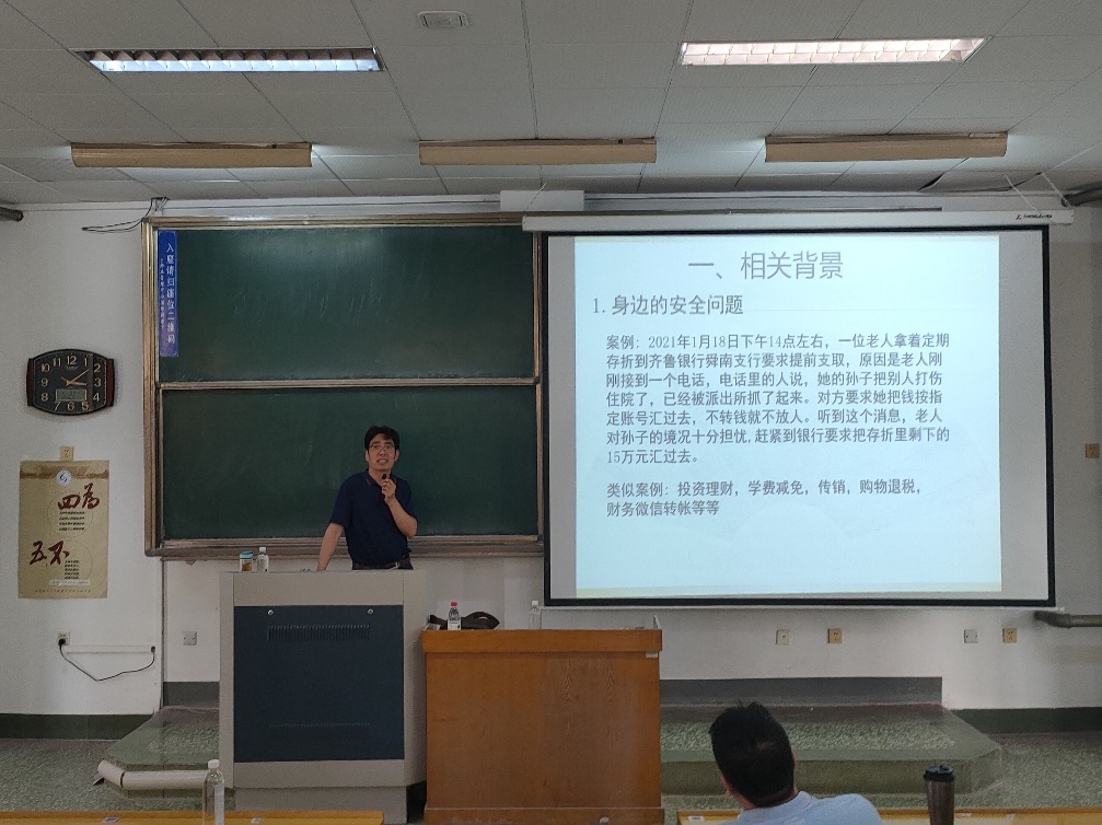 5月22号下午,1992级员工、济南大学温凤桐教授于15号教学楼103教室作了题为“基于多因子的远程身份认证协议”的学术报告,报告会由高健主持,公司研究生和2018级全体在校生参加。温教授首先介绍了相关背景、发展前景以及相关数学问题,接着系统地论述了远程身份认证协议,重点讲解了实现身份证明的基本途径和远程身份认证模型,最后对远程身份协议实例做了介绍。报告结束后,温凤桐教授就报告的内容与在场的员工进行了交流,现场气氛十分活跃,温凤桐教授对大家提出的问题进行了详细的解答,报告会在掌声中圆满结束。