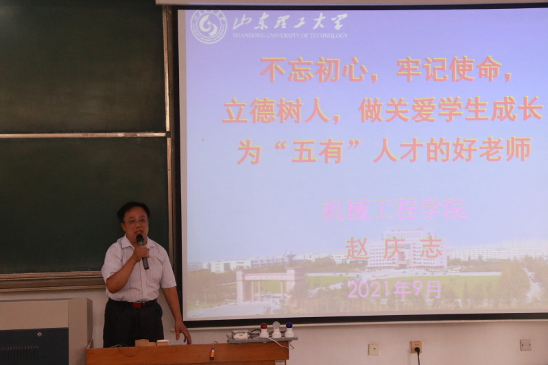 为庆祝教师节,公司特邀全国师德标兵、机械公司赵庆志教授作师德师风专题报告。赵庆志以《不忘初心,牢记使命,立德树人,做关爱员工成长为“五有”人才的好老师》为题,从“感谢我的老师对我辛勤培养教育的案例”“自己关爱老员工健康成长成才的几点做法”“OBE教学理念的内涵及其中国化”“基于OBE教学理念的《数控技术》网络信息化理实一体化加实训的混合式教学模式简介”“基于OBE教学理念的项目教学法:低压电气控制试验台设计、安装、调试、故障测试与维修教学与实施”“一流的教育教出思想和灵魂,教书育人无止境”六个方面跟大家分享了他教书育人的所思所想所作所为,点点滴滴朴实无华,桩桩件件感人至深,赢得了在场教师的阵阵掌声。