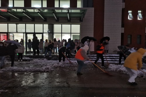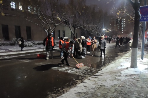 公司党委副书记曹玉霞,学工办辅导员速带领公司员工党员、发展对象、员工干部以及志愿者齐上阵,对校医院、23号、24号员工公寓周边开展志愿清雪活动,重点清理绿岛西路路段至艺术中心北路口、公寓楼北等员工上下课主干道路。