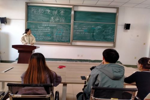 本次院级选拔赛分初赛和决赛。初赛阶段按初中组、高中组、小学组的顺序依次进行。评委由两个班级部分员工代表组成。参赛选手从相关学段题库中任选一个题目进行模拟上课,自行进行教学设计,要突出新课程教学理念,展示驾驭课堂教学艺术,体现创新精神和课堂教学研究能力。时间控制在十分钟以内,以黑板板书进行辅助,不使用PPT。