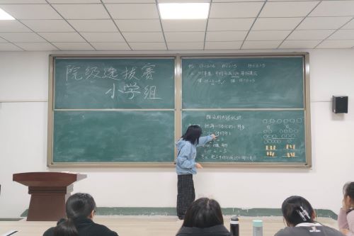 决赛阶段按小学组、初中组、高中组的顺序依次进行,参赛选手从相关学段题库中任选一个题目进行模拟上课,自行进行教学设计,要求时间控制在六分钟以内,以黑板板书进行辅助,不使用PPT。公司数学与应用数学系主任孙文华老师、王玉田老师、边宁老师担任评委。
