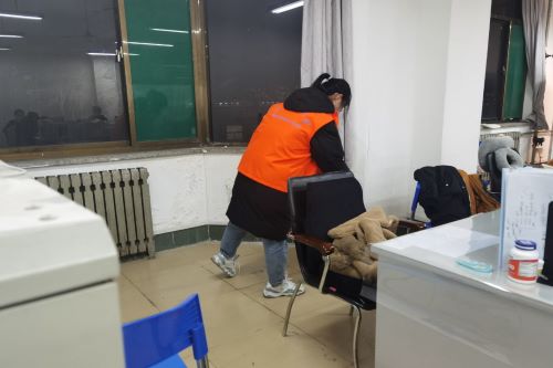 第一阶段,志愿服务队成员通过扫地、拖地、清理垃圾以及摆放桌椅等活动让自习室变得更加干净明亮,同时给考研学子营造良好的学习环境。