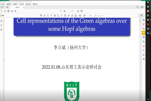 本次研讨会邀请了5位代数表示论方向的的专家教授包括扬州大学李立斌教授、南京师范大学魏加群教授,中国科学技术大学陈小伍教授以及西南交通大学刘品副教授和首都师范大学陈红星副教授。