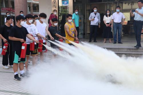 在员工实验课期间突发火情应急处置环节,现场演练了模拟了火情报警、紧急疏散、灭火自救等多个消防安全应急场景,参演师生听从指挥、冷静应对、紧张有序、安全疏散。在灭火器的操作演示环节,安全管理处治安一科左敏按照“提、拔、握、压”操作步骤,向观摩师生详细讲解了灭火器操作规范,部分员工代表现场进行了灭火器灭火演练。在常见生活用品灭火常识教育及演示环节,公司工作人员向师生们普及基本的防火、灭火常识,现场演示了湿毛巾灭火、碳酸饮料灭火等应急灭火方法,并详细讲解了相关注意事项。