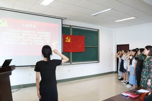 各员工党支部结合2022年上半年发展党员有关程序要求,组织全体毕业生党员,面对党旗再次庄严宣誓,公司党委书记王玉冰同志参加宣誓仪式,并勉励新党员要努力奋斗,牢记入党时的铮铮誓言,让入党誓词成为未来之路的领航明灯,让党员身份在担当奉献中熠熠生辉。