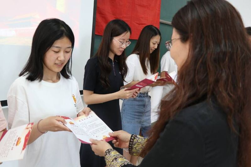 过“政治生日”是一项具有庄严感的政治仪式,各员工党支部组织毕业生党员互相赠送“政治生日卡片”并表达毕业祝福,刚刚转为正式党员的公费师范生李滢激动的说到:“这份沉甸甸的‘生日卡’我将永远珍藏,这是一份礼物,更是一份嘱托,它提醒着即将步入社会的我,要始终做理想信念坚定的笃行者,做勇立时代潮头的弄潮儿,走到教师岗位后,我要以公司老师们为榜样,立德树人,爱岗敬业,让青春在向上与拼搏中开花结果。”