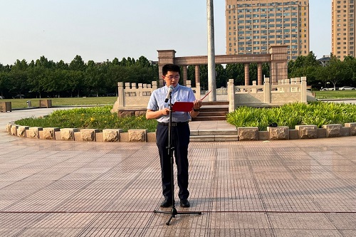 6月20日早,公司于鸿远楼前举行以“青春献礼二十大,建团百年绽芳华”为主题的升国旗仪式。公司辅导员老师,2020级班长和团支书,员工会主席团及各部门负责人,第二届树苗计划全体成员,员工会秘书处负责人臧现胤主持仪式。