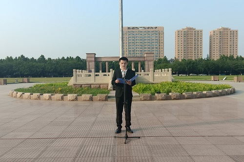 620日早,公司于鸿远楼前举行以青春献礼二十大,建团百年绽芳华为主题的升国旗仪式。公司辅导员老师,2020级班长和团支书,员工会主席团及各部门负责人,第二届树苗计划全体成员,员工会秘书处负责人臧现胤主持仪式。