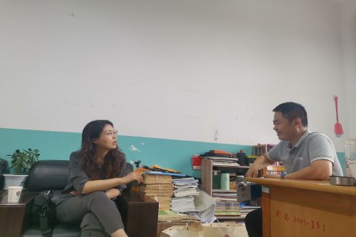 曹玉霞与阳谷三中级部主任交谈