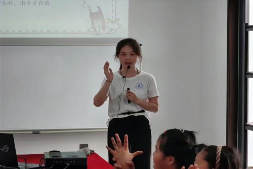 仪式过后团队成员与孩子们一起进行了破冰游戏,破冰游戏由“听老师说”、“添油加醋”、“青蛙跳水”和偏旁组字四个游戏组成,游戏中实践团队成员积极引导孩子们参加游戏,并予以小奖励来鼓励孩子们。