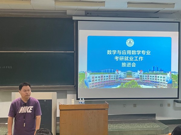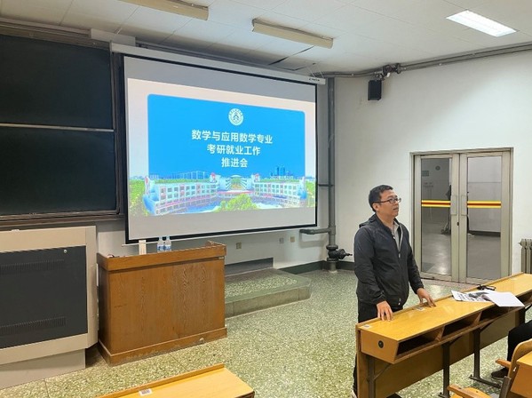 为推进国家级一流本科专业建设点建设,提升人才培养质量,9月23日,在全国硕士研究生招生预报名系统开放之际,数学与应用数学专业2019级考研就业工作推进会在15号教学楼103教室顺利召开。数学系部分老师孙文华、杨桂玉、王洪彬、潘丽丽,研究生工作办公室李海玲老师,辅导员刘洁等老师参加本次推进会。