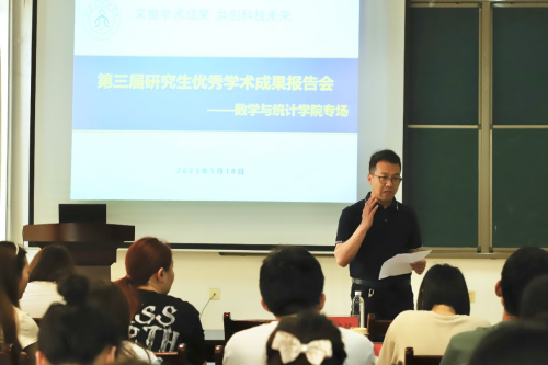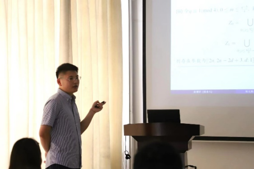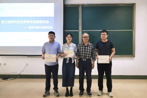 曹永林教授向与会人员介绍了报告会的三位主讲人及他们报告题目。随后,2020级研究生李曙,王超,张耀宗分别作了题为“图的矩阵树定理”、“带位势函数的p-Laplacian方程正规化解的存在性”、“极大距离可分纠缠辅助量子纠错码的构造”的报告。研究生导师代表计省进、马芳卉对报告作了精彩点评。报告结束后,由曹永林教授为主讲人颁发证书。