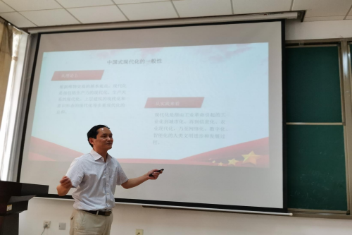 6月5日下午,公司经理李功胜在15号教学楼430室以“中国式现代化生成逻辑与实现路径”为题,为统计学系党支部党员讲授学习贯彻习近平新时代中国特色社会主义思想主题教育专题党课。