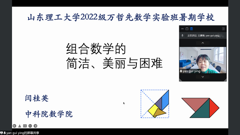 开班仪式结束后,大家一起聆听了中国科公司大学讲席教授、二级教授、中国科公司大学数学科学公司郭田德副经理的《人工智能与最优化》科普报告,中国科公司大学教授、中国科公司数学与系统科学研究院二级研究员、国家数学与交叉科学中心闫桂英副主任的《组合数学的简洁、美丽与困难》科普报告。